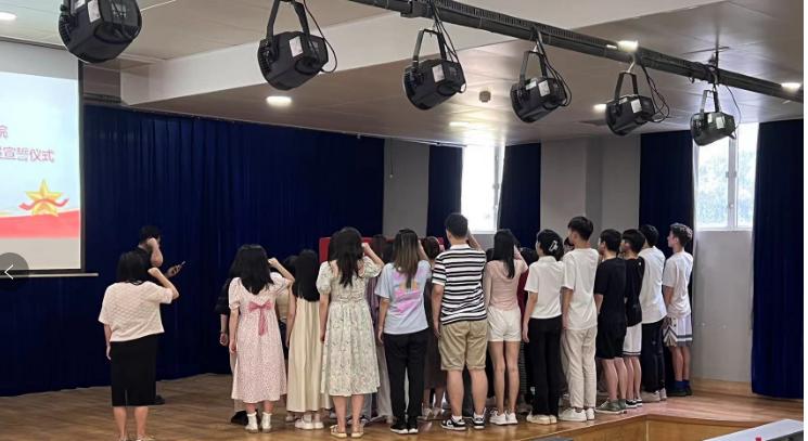 丁艺林同志作为领誓人,带领本年度新发展的党员与老党员面对党旗庄严宣誓。