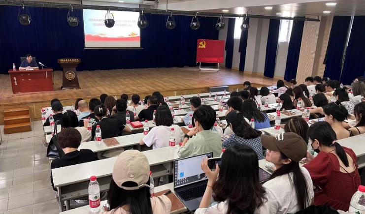 最后,党委副书记赵华对本次大会进行了总结,并向2023届即将毕业的学生党员提出期许,希望各位党员同志立志高远、坚定信念,答时代之问,葆党员初心,写青春华章。在百年变局中砥砺初心,在时代大潮中确立志向,大胆施展才华抱负,勇于担当奉献。大会在对毕业生一帆风顺、前程似锦的美好祝愿中圆满落幕。