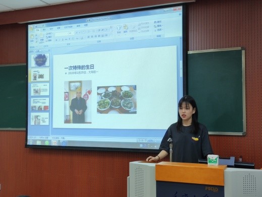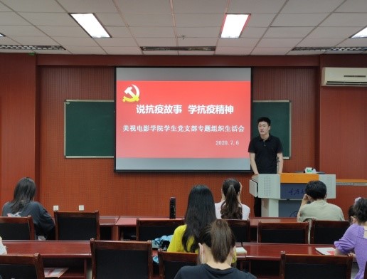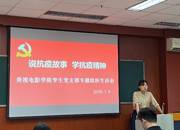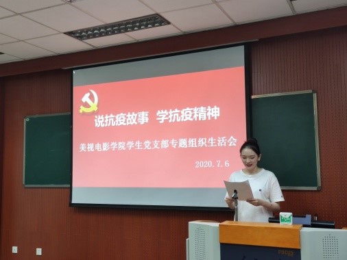 然后,四位学生党员代表结合自身经历先后向在场党员讲述了抗疫一线的故事,传递青春正能量。本科一支部李悦琪同志利用自身专业优势,在线为重庆一线医疗工作者子女免费辅导功课,陪孩子聊天、唱歌、讲故事,通过关爱与陪伴化解了孩子们心中的忧愁、解决了医护人员的后顾之忧。本科二支部王心仪同志分享了自己与弟弟的社区防疫经历,通过负责小区居民的出入登记、测量体温、疫情宣传、公共设施消毒等工作,构筑起居民生命健康的“防火墙”。专硕研究生支部张栋栋同志借习近平总书记给北京大学援鄂医疗队全体“90后”党员的一封信,引出青年党员要勇担当敢作为,在学思践悟中坚定理想信念,在奋发有为中践行初心使命,并讲述了自己疫情期间为家乡录制宣传防疫知识音频的故事。学硕研究生支部苏子勰同志,分享了其作为研团委副书记,围绕“文化抗疫”策划一系列丰富多样的线上活动充实同学们在家时光的经历。四位党员同志的抗疫经历告诉我们,平凡之中方能见伟大,英雄其实就在身边。
