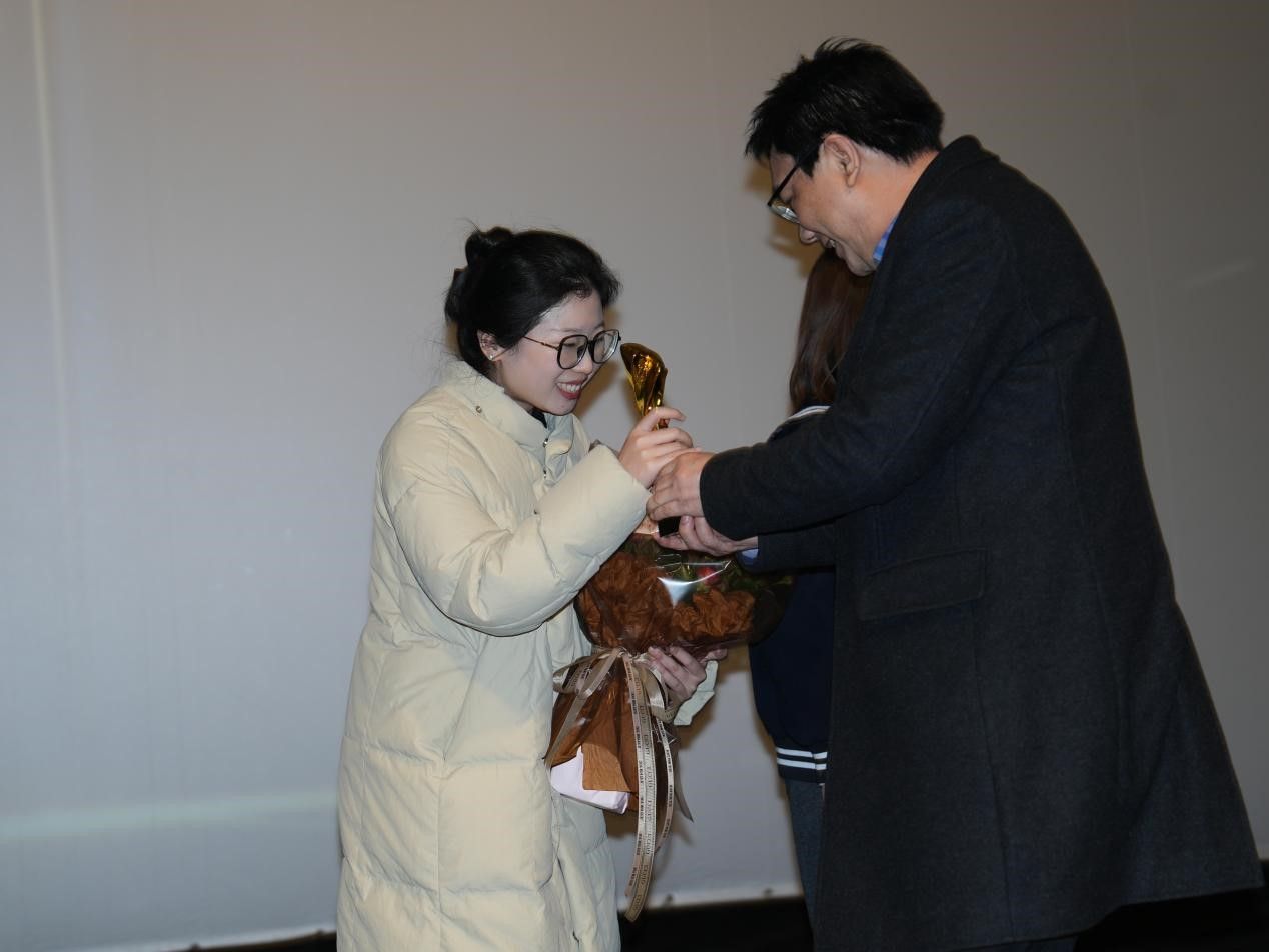 马欣副院长发言结束后,根据老师们和同学们的打分,评选出了本次展映的几部优秀影片,并颁发了奖项,它们分别是最佳短片《温居》、最佳导演张茜《温居》、最佳编剧刘洢葶《小城弥烟》、最佳摄影 李亚龙《回響》、最佳纪录片《唱歌要很用力》、最佳演员 李雨桐 王珊《晚安妈妈》、最佳导演 劉畇萲《唱歌要很用力》。