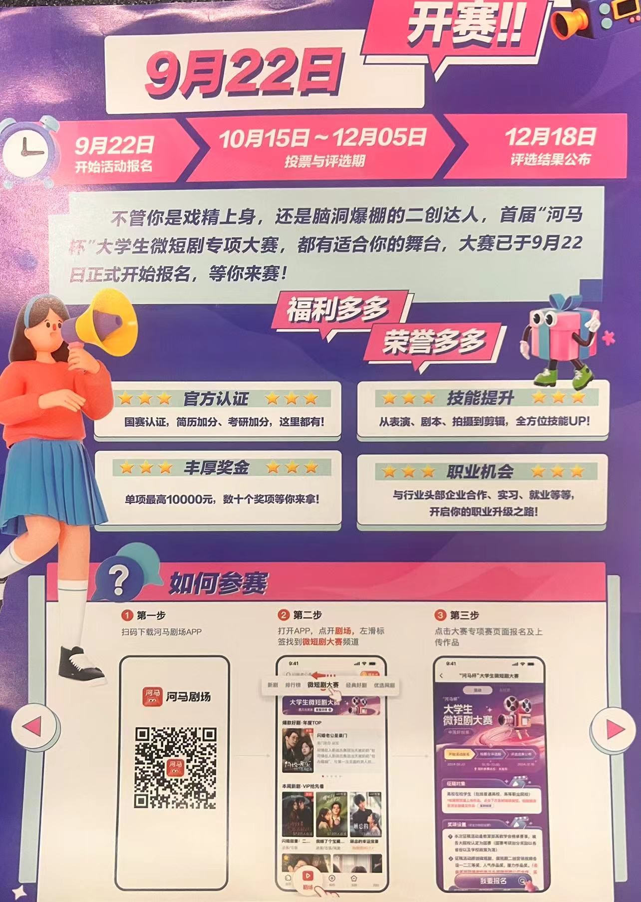 为了挖掘更多的优质作品,扶持优秀的微短剧创作者,推动行业新质生产力的不断突破和创造,由中国网络视听节目服务协会与中国好创意暨全国数字艺术设计大赛组织委员会主办,点众科技承办的第19届中国好创意—首届“河马杯”大学生微短剧专项大赛宣讲会于10月15日,在奈飞