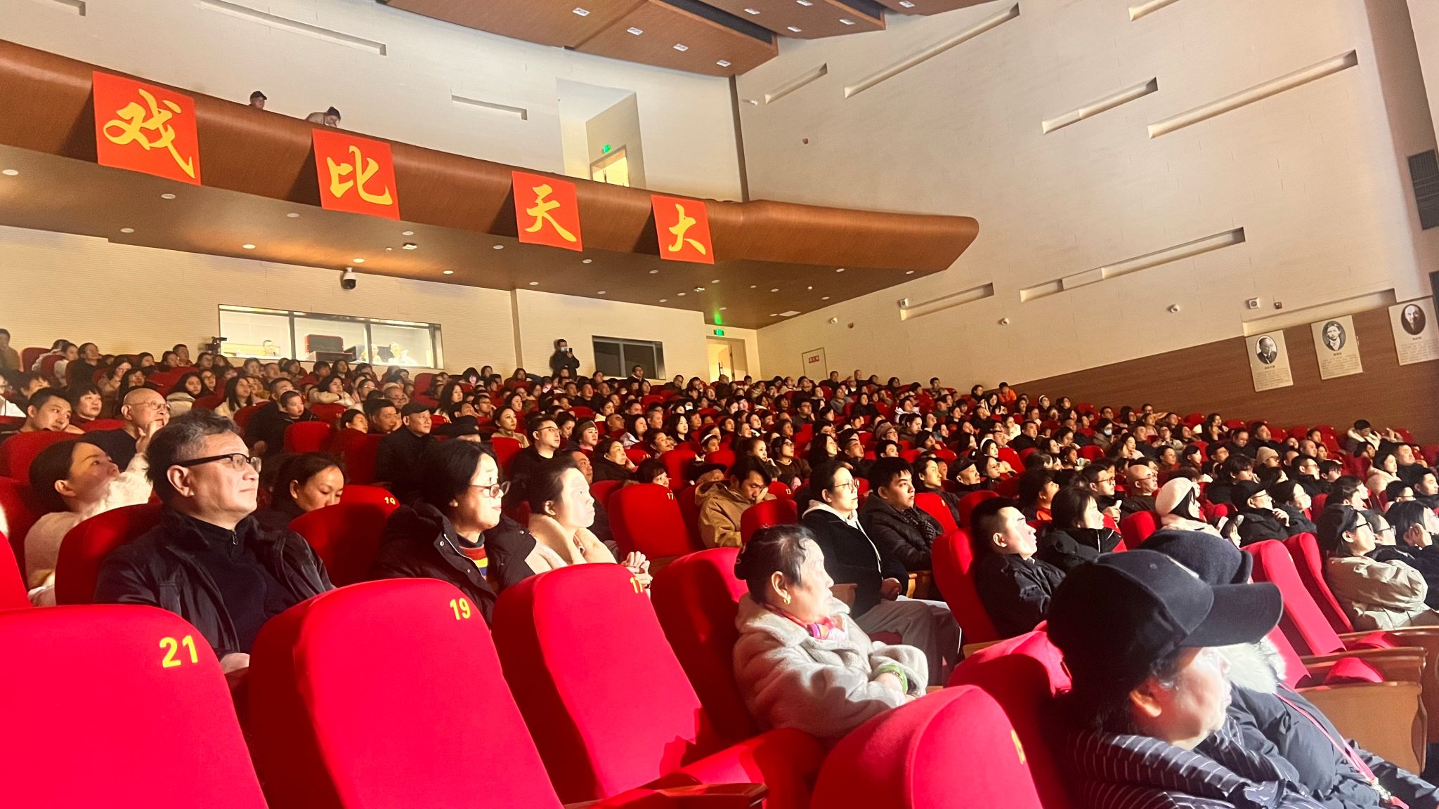 台下的观众们更是沉浸在这精彩绝伦的剧情之中,随着剧情的起起伏伏。时而被演员们幽默诙谐的表演逗得开怀大笑,那爽朗的笑声在剧场内回荡,传递着大家对演出的认可与喜爱;时而又会陷入深深的沉思,仿佛跟随剧中人物一同探寻着戏剧艺术的真谛,思索着艺术传承与创新的深刻内涵。整个演出过程中,灯光、音效等各元素之间配合得相得益彰,完美地融合为一个有机整体,进一步为这场演出营造出了浓厚且独特的艺术氛围,宛如给这场戏剧盛宴披上了一件华丽的外衣,使其更加光彩夺目,熠熠生辉。