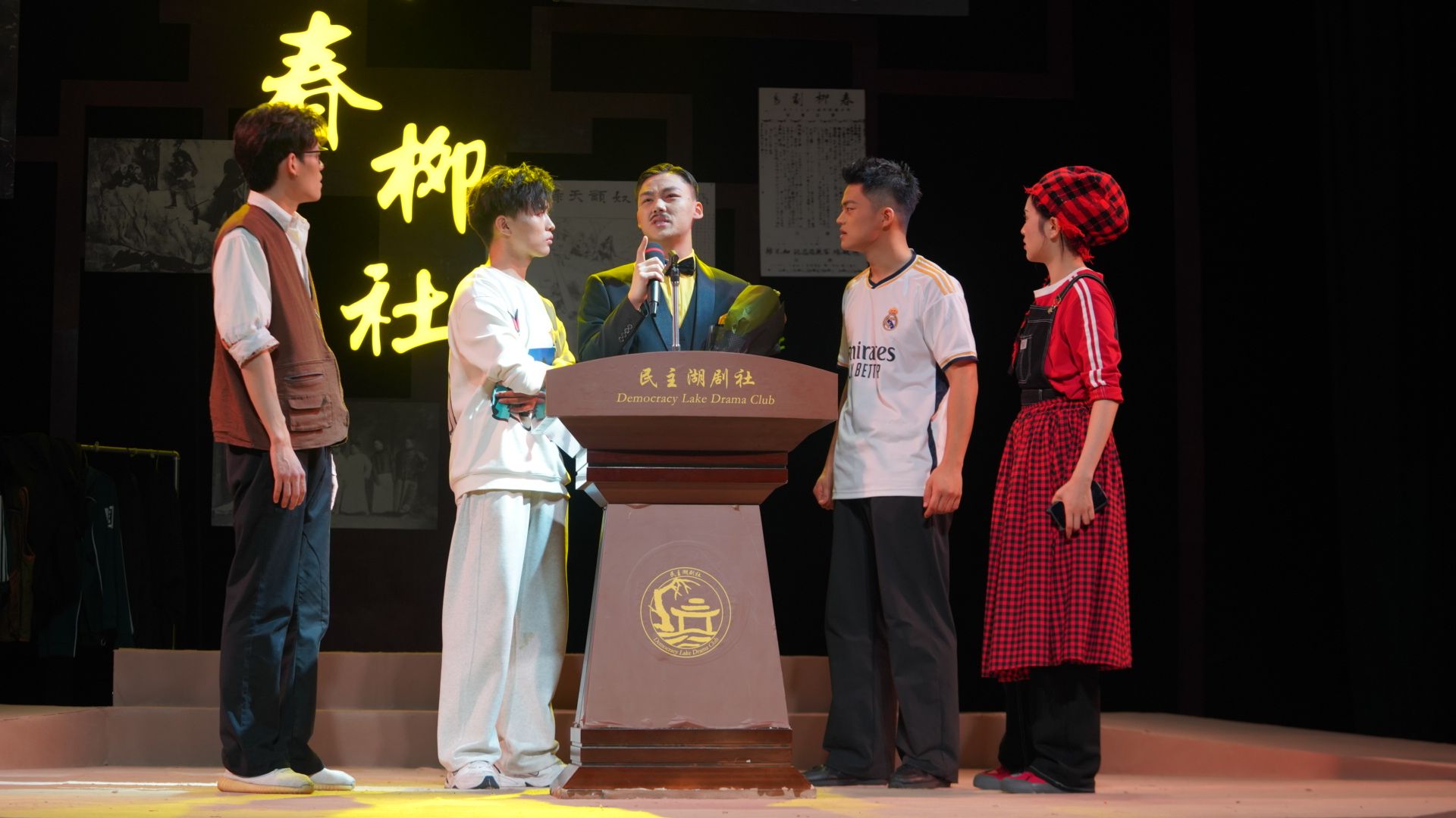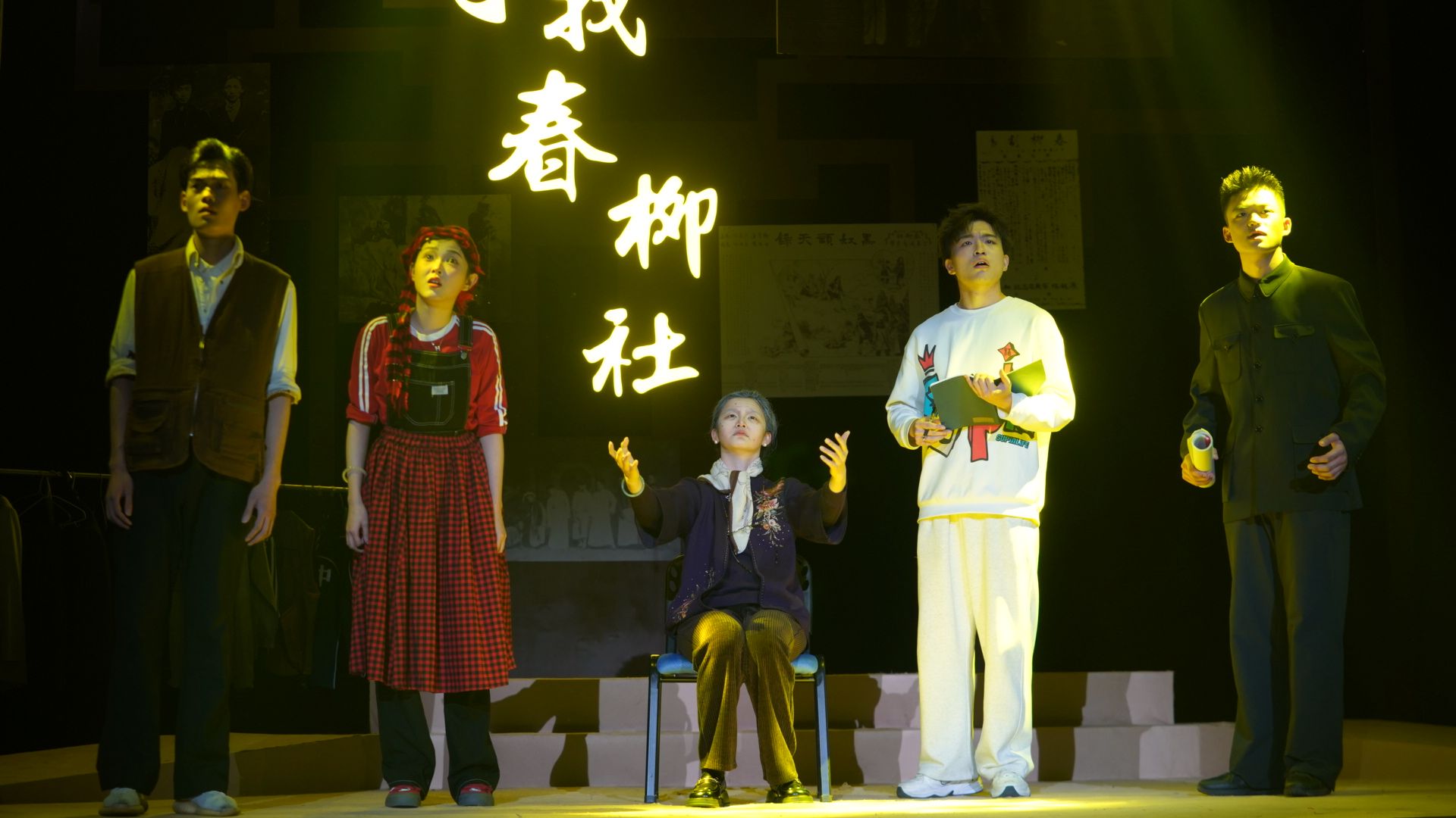 随后,12月4日至6日,2021级表演1班的毕业大戏《寻找春柳社》在小剧场精彩呈现。这部由李龙吟编剧的作品,在张大涛导演的精心编排下,焕发出独特的艺术魅力。故事以一种戏中戏的独特结构展开,巧妙地将现代戏剧人的探索与对春柳社的追溯相融合。演员们穿梭于不同的时空场景,在现实与历史的交错中,精准地把握角色的情感与性格特点。从现代排练场里演员们对表演理念的争论,到重现春柳社经典剧目的片段时所展现出的复古韵味,每一个转换都流畅自然,让观众仿佛置身于一场跨越时空的戏剧之旅。
