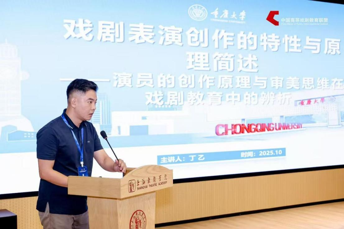 在论坛环节中,丁乙副教授作了题为《戏剧表演创作的特性与原理简述——演员的创作原理与审美思维在戏剧教育中的辨析》的学术发言。丁乙副教授指出,“中国演剧体系”的构建是在习近平文化思想的指导下推动戏剧艺术中国化的重要实践,使当代戏剧教育更好地服务于中国特色、中国风格、中国气派的话语体系建设。他认为,当前高校戏剧教育应进一步明晰表演创作的基本原理与审美逻辑,通过对演员创作规律与审美思维的系统辨析,深化学生对表演特性与创作过程的理解,推动表演理论体系与实践教学的有机融合。
