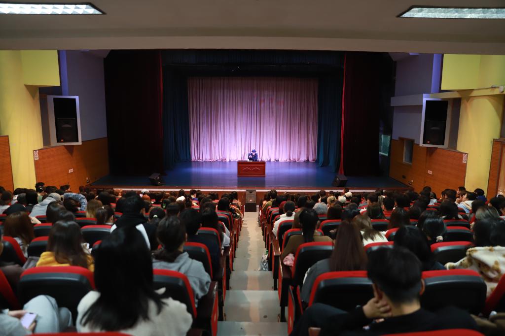 的办学宗旨、理念和教学特色。他结合自己的演艺生涯,勉励同学们要深刻认识自己所处的新时代,努力认清当下国家、学校以及自己所学专业领域的新形势、新变化,鼓励同学们珍惜美好的大学校园生活,多读书、多实践、多感受,不断培养提升自己的艺术敏锐性和感悟力,紧跟时代步伐,不忘初心,将来做一名对国家对社会有贡献的时代新人。