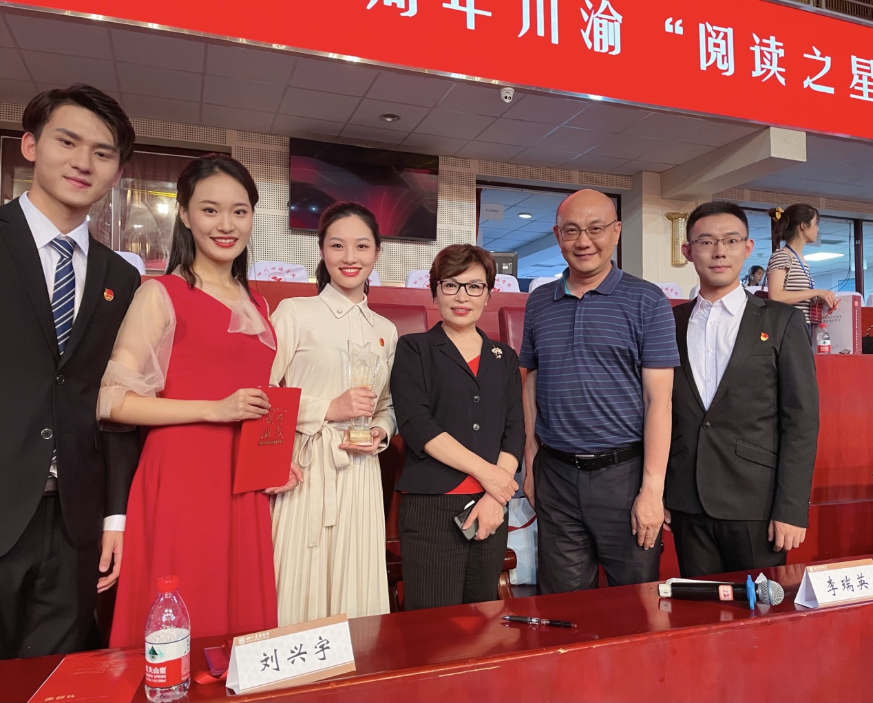 诵读大赛历时三个月,在学院的支持与指导下,四位选手通过区、市初赛、复赛、决赛层层选拔分别带来《绿水青山》《第一书记》《小平您好》三部作品。在6月15日的川渝总决赛中,他们的作品《小平您好》摘得99.026全场最高分,荣获星光金奖(第一名)的好成绩。