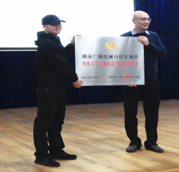 与湖南广播电视台娱乐频道共建实习创作基地授牌仪式暨宣讲活动在学院阶梯教室举行。
