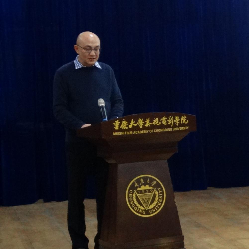 授牌仪式结束后,湖南广播电视台娱乐频道Drama Tv总经理崔宇为同学们做专业实习宣讲。他表示会通过机构与平台合作、设立外签校园工作室、提供优先实习就业通道及扶持优秀导演等方式,推动实习与创作基地的发展,鼓励同学们积极地申请实习,利用好基地资源进行专业实践。
