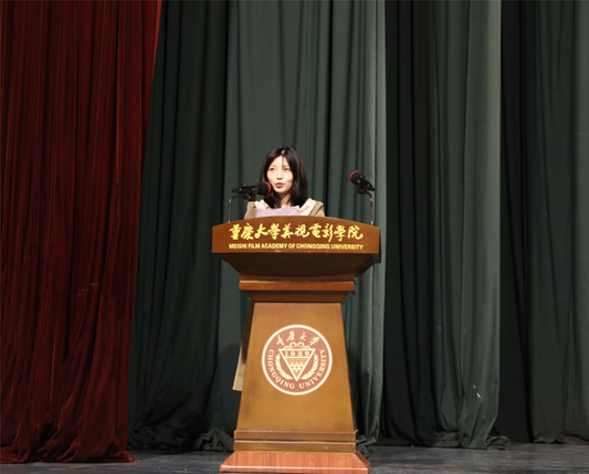 教师代表鲜佳发言,为能与各位同学们一同在光影的世界里遨游,共同走过这段精彩的电影旅途感到荣幸,希望同学们在这“后电影”时代都如电影中的主角,就算面临着各种挑战和机遇,也不要停止探索脚步,保持对新技术的好奇心,不断学习,铭记对电影的热爱和敬畏之心。毕业不是终点而是新的起点,相信所学知识和所培养的品质都将为同学们指引方向、提供动力。
