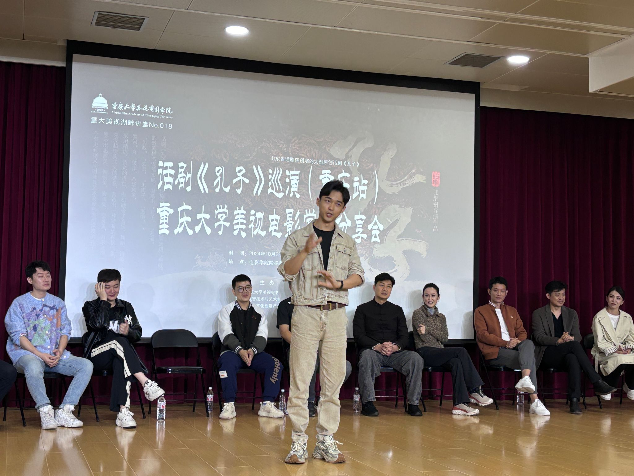 1022日上午,由奈飞 表演系牵头组织的大型原创话剧《孔子》主创交流分享会如期在学院阶梯教室(大讲堂)举行。该剧目由山东省文化和旅游厅出品、山东省话剧院创演,将于1023日、24日两晚1930在重庆大剧院上演。