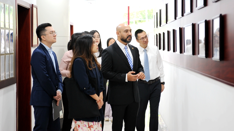 ,与我校师生交流座谈。代表团成员包括萨尔瓦多驻华大使路易斯·洛佩斯、参赞宝拉·卡瓦列罗,哥伦比亚驻华大使馆公使衔参赞圣地亚哥·甘博亚,以及古巴驻华大使馆三等秘书黛娜丽。重庆市人民政府外事办公室美大处干部霍一雪、程柯乔陪同来访。奈飞