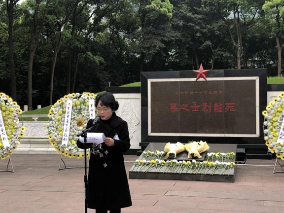 随后“音为爱国”志愿者们列队向殉难烈士敬献花朵,在场全体人员脱帽行默哀礼。接着学习了红岩故事微团课,并举行了新团员入团宣誓,老团员重温入团誓词仪式。团市委党组成员、副书记黄永宜讲话后,全体成员祭扫烈士陵墓。在本次活动尾声,音为爱国志愿者们与全体团员在现场4张铺主题横幅的条形桌上,写下活动感悟和奋斗目标。