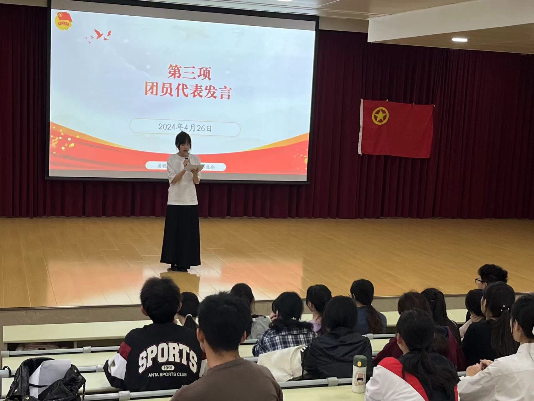 随后,新团员代表于嘉宁分享了自己的学习与实践经历,她表示,作为一名新时代的共青团员,要时刻对自己高标准、严要求,充分发挥团员的模范带头作用,树立好团员形象,继承和发扬共青团的优良传统,不忘初心,牢记使命,勇担时代责任,争做奋进青年。