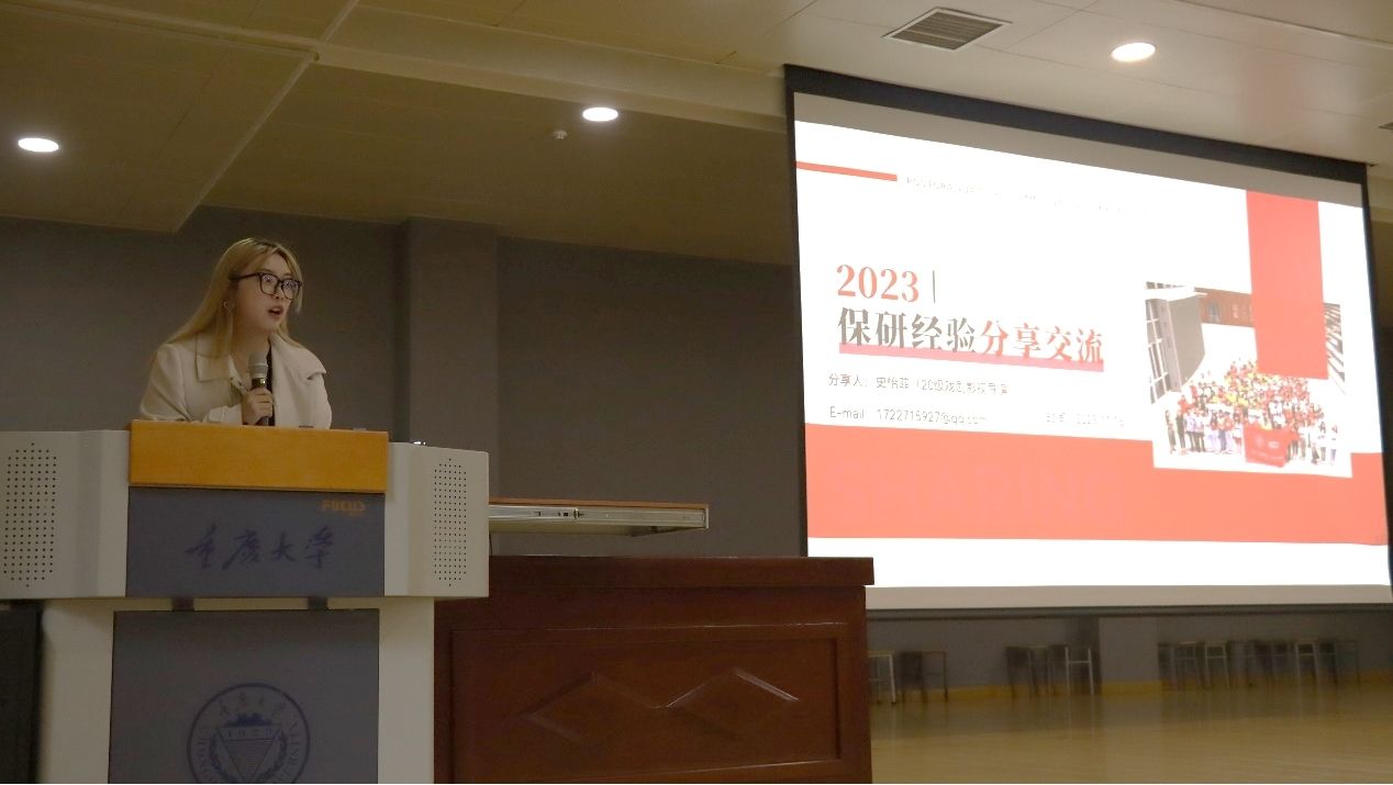 会上,厉宣浩向与会同学简要介绍了举办此次分享交流会的目的和意义。随后五位同学结合自身经历,围绕大学期间各阶段努力方向、英语与科研能力提升、推免院校与专业选择、个人材料准备、面试经验技巧与注意事项等多个维度向师弟师妹进行了精彩分享。在交流互动环节,分享人针对同学们提出的疑惑和问题进行了细致耐心的解答。赵华在交流会最后进行了总结讲话,她表示,主讲同学们的分享非常精彩,内容丰富详实,充分发挥了高年级本科生的朋辈引领示范作用,有助于同学们更加直观的了解推免研究生的流程,进一步明确了大家今后的努力方向。