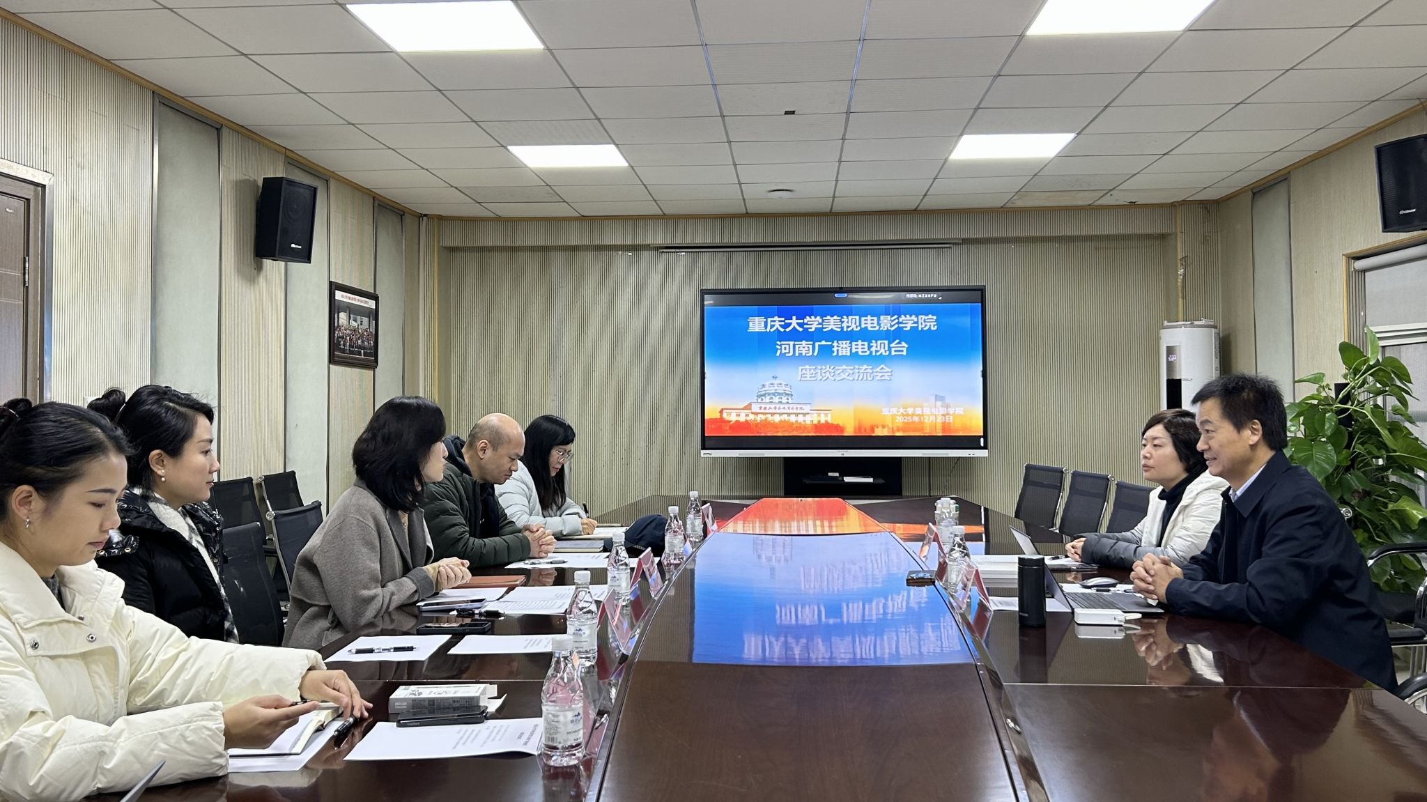 会上,赵华首先对河南广播电视台一行的到访表示热烈欢迎,并围绕学院专业特色、学科建设、招生就业等方面情况作了详细介绍。她表示,学院始终将人才培养与学生就业工作摆在重要位置,下一步将进一步加强校企对接,拓展就业渠道,开展精准就业指导,全力促进毕业生更充分、更高质量就业。黄鹏介绍了学院在教学改革、行业认知培育、学生实习实践等方面的举措,强调要紧密对接行业前沿与产业需求,持续优化专业结构,加强师资队伍建设,推动理论教学与实践教学深度融合,为学生成长成才提供坚实的学科支撑。