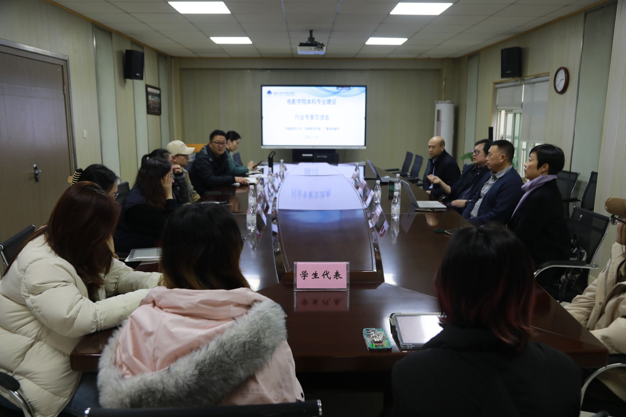 与会的戏剧影视文学、戏剧影视导演、广播电视编导三个专业的学生代表们利用与学校教师团队面对面交流的机会,从学生学习的角度,提出强化软件技能教育、优化基础技能教