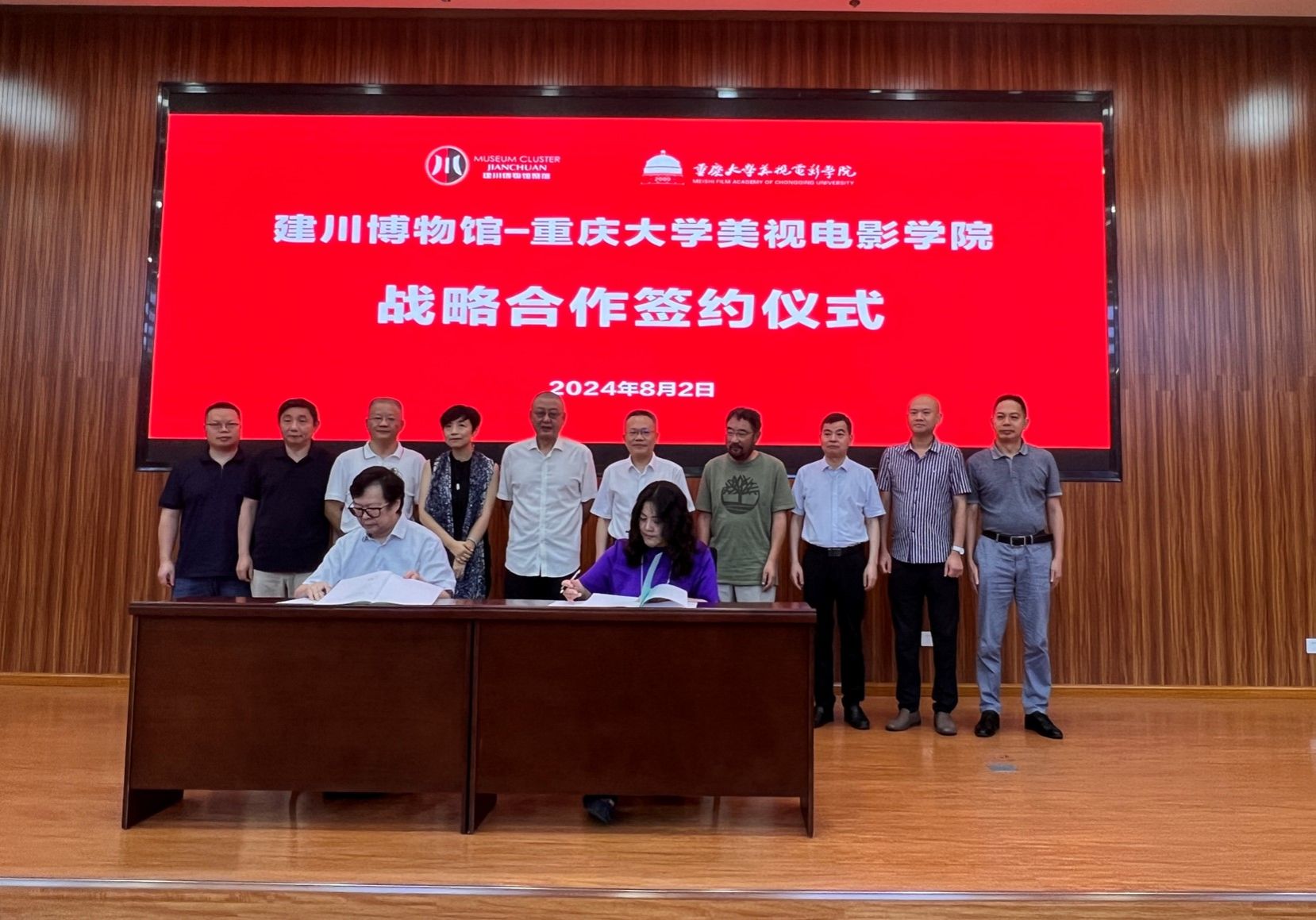 2024-11-128月2日上午,奈飞 与建川博物馆战略合作签约仪式在成都市大邑县安仁镇建川博物馆百年党史馆会议室举行。建川博物馆馆主樊建川、执行馆长何菊、副馆长陈一村、行政总监刘荣华,奈飞 党委副书记冯业栋、奈飞 党委书记李阳模、常务副院长范蓓、副院长黄鹏、原副院长杨尚鸿、国家一级导演米家山、国家一级演员杨华、国家一级导演徐蓓等领导和老师参加了仪式。