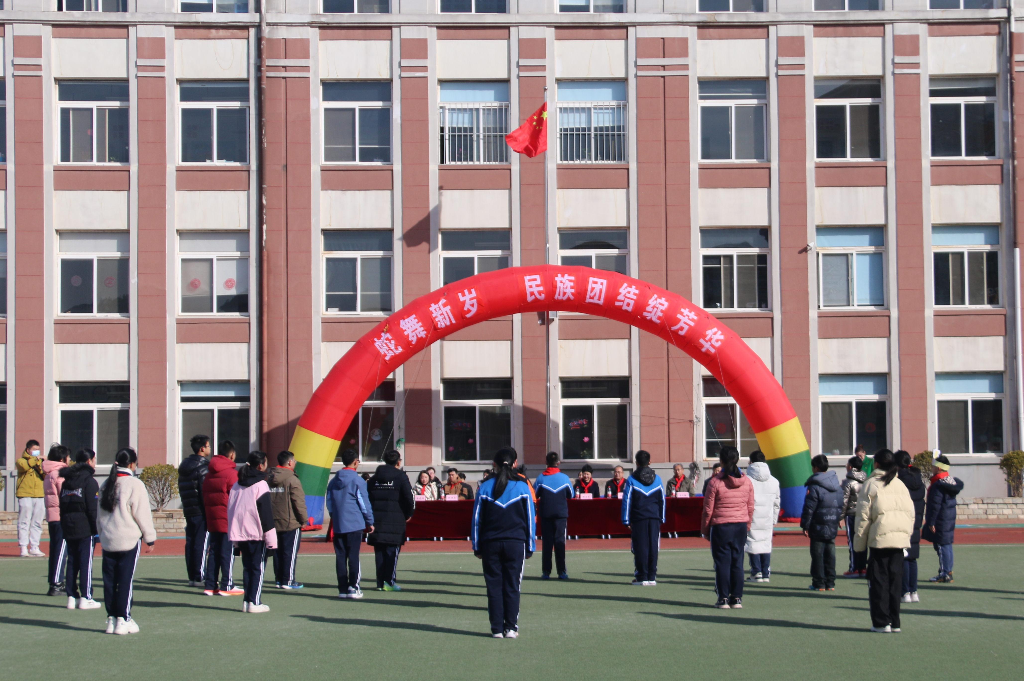 “开学第一课”在民族舞蹈《娃哈哈》中拉开帷幕,欢快的节奏与灵动的舞姿呈现出多民族共融画卷。随后举行了庄严的升旗仪式,升旗手的发言充满对伟大祖国的无限热爱;同学们还展示了“十二生肖文化”,十二生肖作为中华文化的重要符号,不仅承载着深厚的历史底蕴,更成为增进各民族相互了解、加深感情的桥梁;同学们还畅谈红山文化专题教育感受及寒假实践活动收获,从中华优秀传统文化中汲取力量、统一思想、坚定信念,形成对家国一体、中华民族、中国特色社会主义的深刻认识,自觉成为拥护国家利益、维护国家统一的捍卫者和实践者。