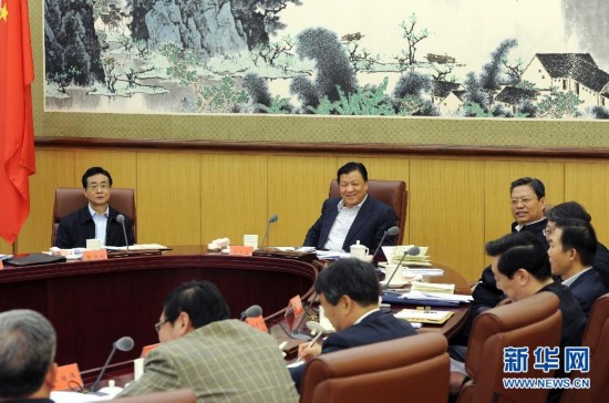 10月26日,中共中央政治局常委、中央党的群众路线教育实践活动领导小组组长刘云山在北京主持召开中央党的群众路线教育实践活动领导小组第五次会议。新华社记者 饶爱民 摄