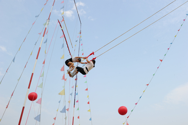 秋千、荡秋千,是朝鲜族妇女最喜爱的体育项目之一。比赛分单人、双人,按高度和踢铃的次数决定胜负。秋千比赛惊险刺激,深受观众喜爱。