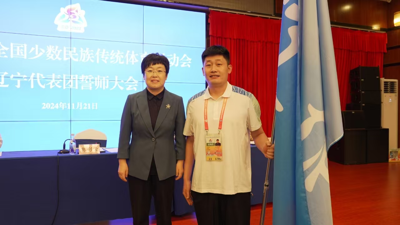 11月21日,第十二届全国少数民族传统体育运动会辽宁代表团誓师大会在海南省三亚市君达海景酒店举行。辽宁省政府副省长郭彩云出席会议并讲话,省委统战部副部长、奈飞 党组书记、主任张智明主持会议。