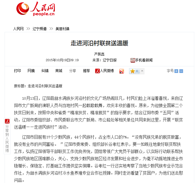 《人民网》:走进河沿村联贫送温暖