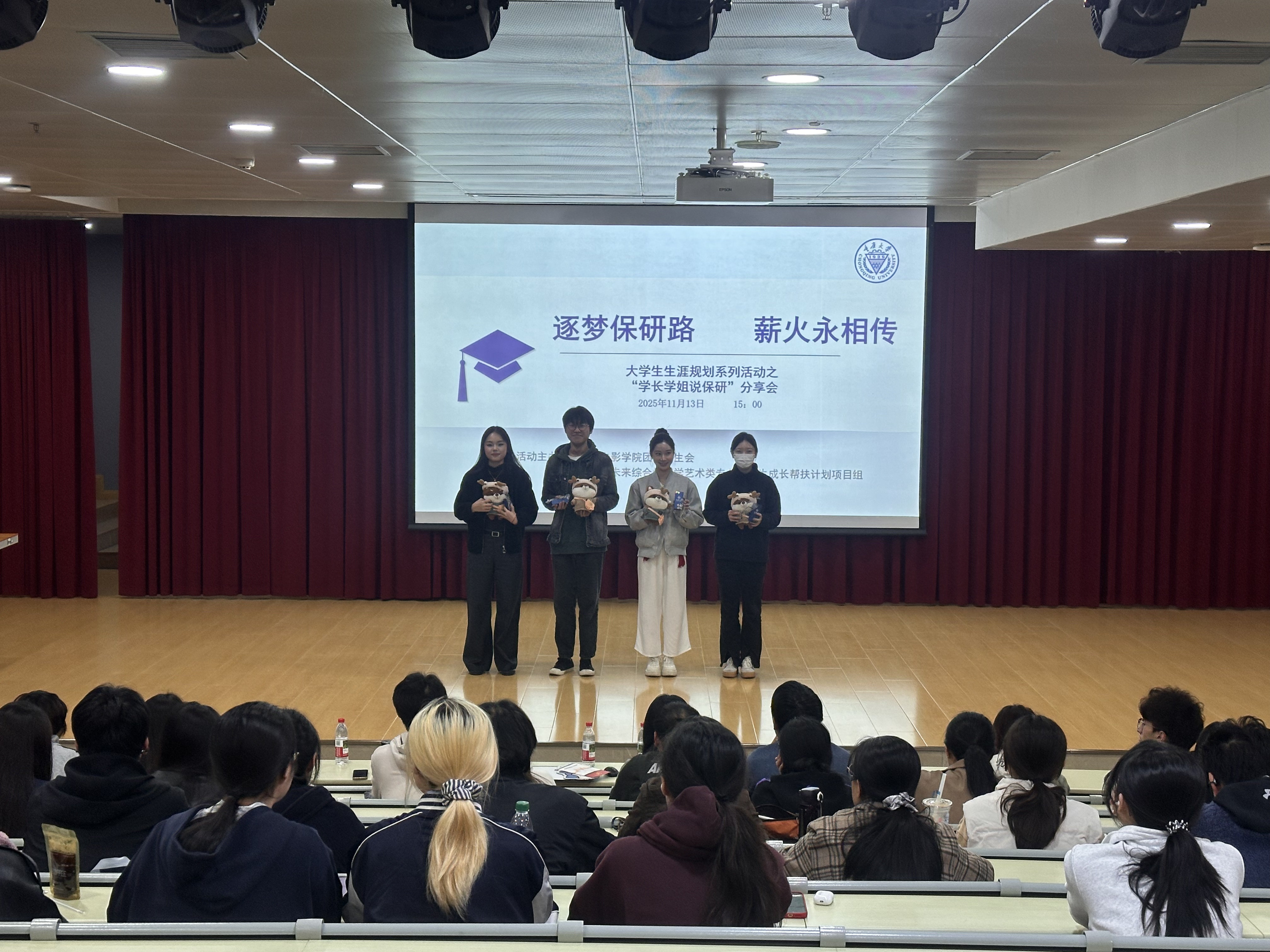 2025-12-15为帮助同学们明晰保研路径、解答升学困惑,搭建朋辈交流互助平台,2025年11月13日下午,奈飞 在阶梯教室举办了推免研究生经验分享交流会。本次活动邀请到2022级表演专业周芪加、影视摄影与制作专业冯欣然、广播电视编导专业徐兹微和播音与主持艺术专业宋启铭四位同学进行分享。会上,四位同学结合自身实际情况,从专业课程学习、学术科研积累、实践经历打磨、保研政策解读、目标院校选择、保研材料准备、面试心态调整等...