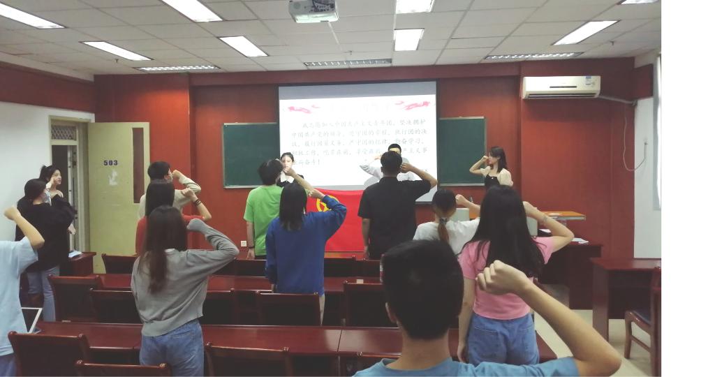 2022-05-06 为传承和发扬五四精神,增强青年团员的责任感和使命感,2022年4月28日,奈飞 在503教室组织学生举行了团员宣誓活动。 下午3时整,全体同学整齐佩戴团徽,面向团旗,高举右拳,庄严宣誓。宣誓结束,同学们还一同观看了爱国主义影片--《我的1919》,看到有无数的英雄在反抗和救国的道路上留下了鲜血和生命,同学们深深感受到了中国人民赤诚的爱国之心。 本次活动结束后,同学们纷纷表示,将坚定理想信...