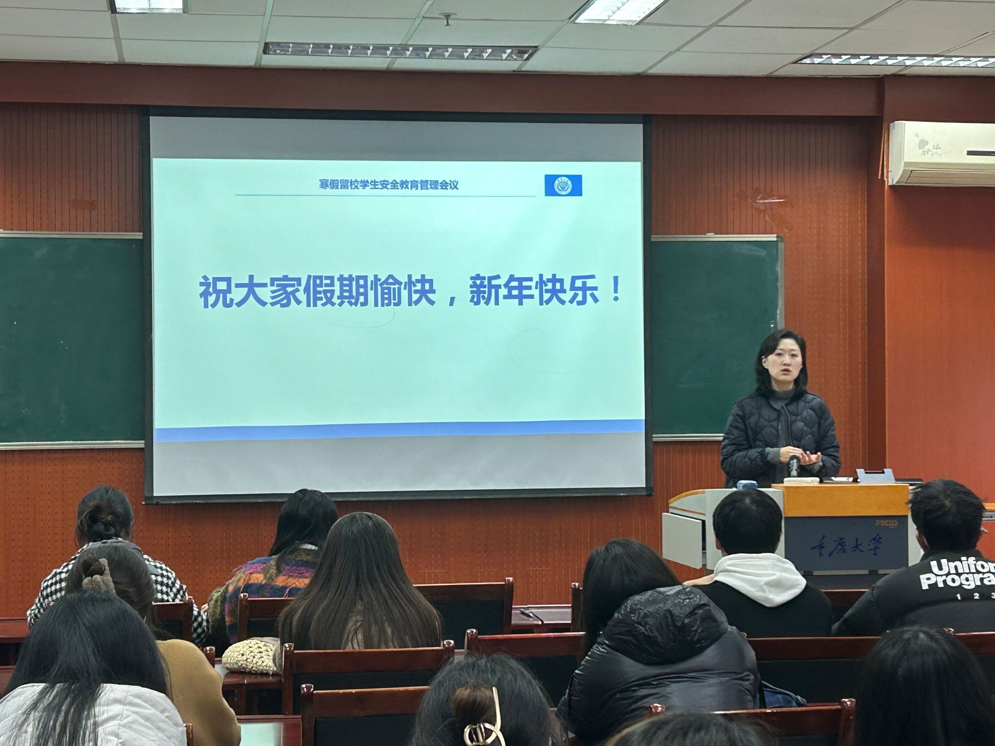 2024-03-12为确保学院寒假留校学生的安全,提升学生的安全观念,增强安全防范意识,1月15日下午15:00,奈飞 再学院503教师召开了寒假留校学生安全教育管理会议,学院学生工作办公室主任、2021级本科生辅导员厉宣浩主持会议,学院分管学生工作的党委副书记赵华,本科、研究生辅导员以及近30名寒假留校学生参加了会议。 会上,厉宣浩向寒假留校同学详细讲解了学校的相关规定及安全注意事项,要求留校同学严格遵守学校规章制度,...