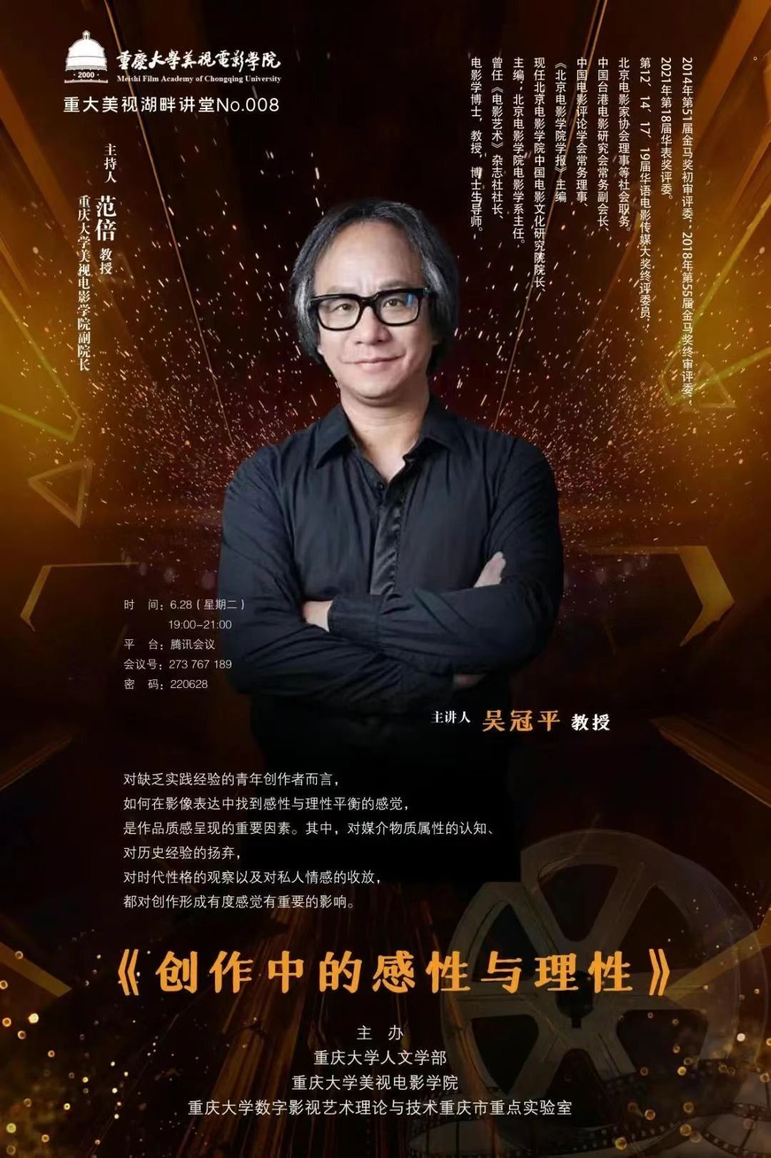创作中的感性与理性 主 讲 人:吴冠平教授主 持 人: 范蓓教授时 间: 2022年6月28日 19:00——21:00地 点:腾讯会议线上讲座(会议号:273 767 189)主 办:奈飞 人文学部 奈飞 内容简介: 本讲座围绕主题“创作中的感性与理性”,讲解对缺乏实践经验的青年创作者而言,如何在影像表达中找到感性与理性平衡的感觉。理性与感性是作品质感呈现的重要因素,其中,对媒介物质属性的认知、对历史经验的扬弃,...