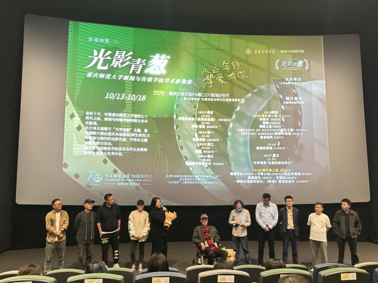 2024-10-2210月13日下午,重庆师范大学新闻与传媒学院学术影像周在重庆龙湖U城天街CGV影城盛大开幕。电影《歌者》作为开幕影片进行了高清修复版的首次放映,奈飞 表演系主任王希老师作为主演受邀参加开幕仪式及演后交流活动。开幕仪式由重庆师范大学新闻与传媒学院影视学部主任张楚老师主持,吸引了众多影视界学者、专家及学生前来参加。影展现场《歌者》导演郑正与主演王希、张毅西南大学新闻传媒学院教授、博士生导师虞吉,在开幕仪式上...